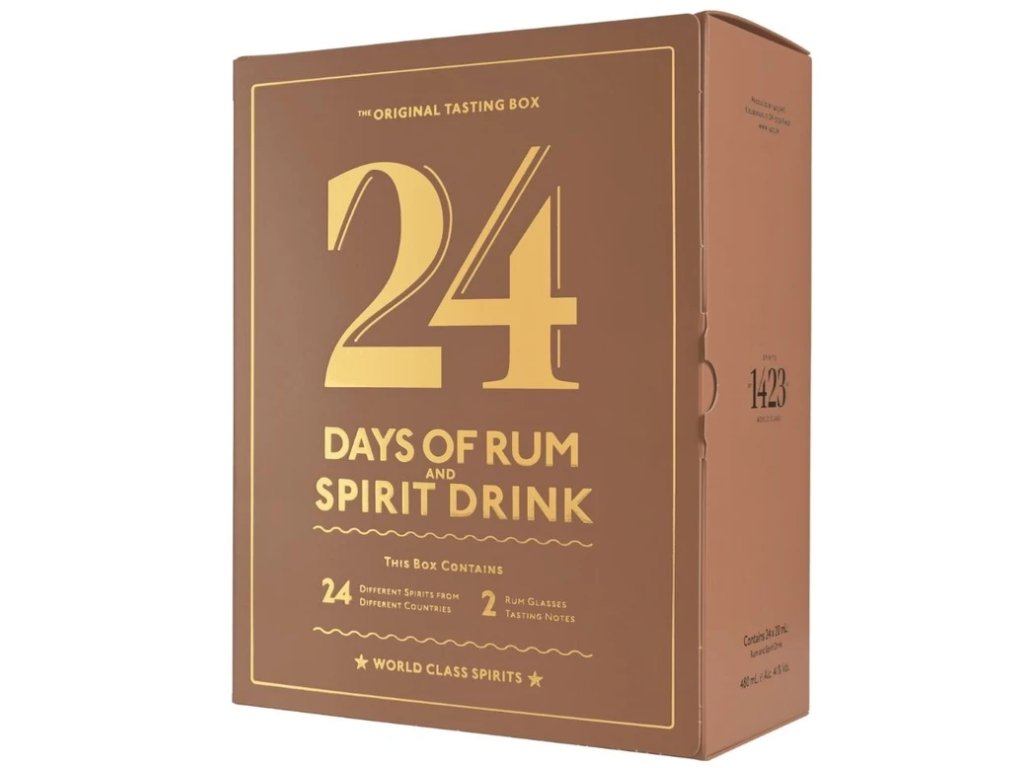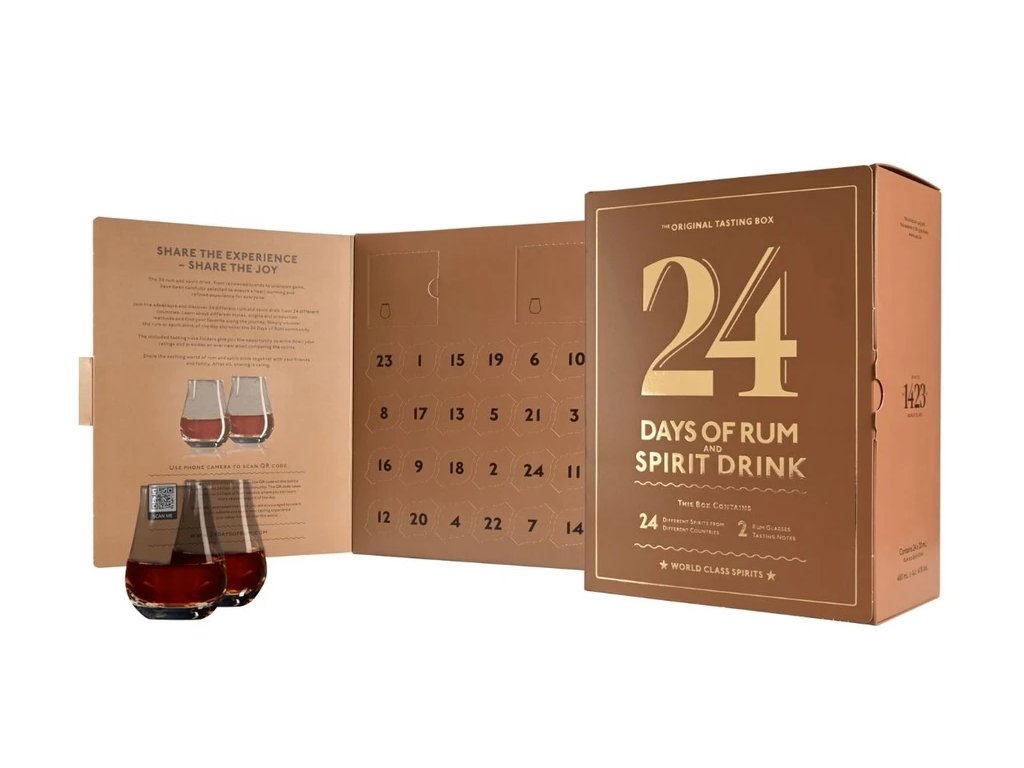 Rumový kalendář je dárková kazeta s perforovanými okénky uvnitř. Najdete zde degustační skleničky a za každým okénkem označeným číslem 1–24 malý vzorek (20ml) třtinového rumu pro každý den. Každý den, až do Štědrého dne, máte možnost objevit a ochutnat nový rum.