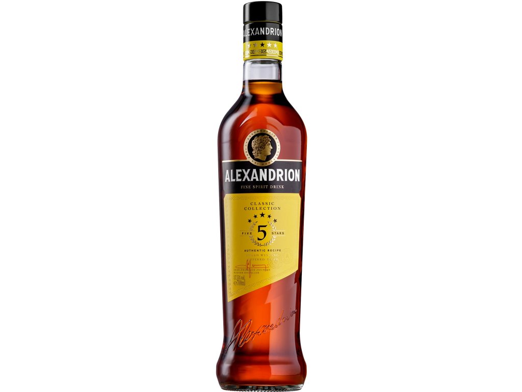 Alexandrion 5* je jemná a vyvážená směs, doplněná stařeným vinným destilátem a směsí přírodních extraktů, s jemnými dozvuky středomořských vůní a dubového dřeva.
