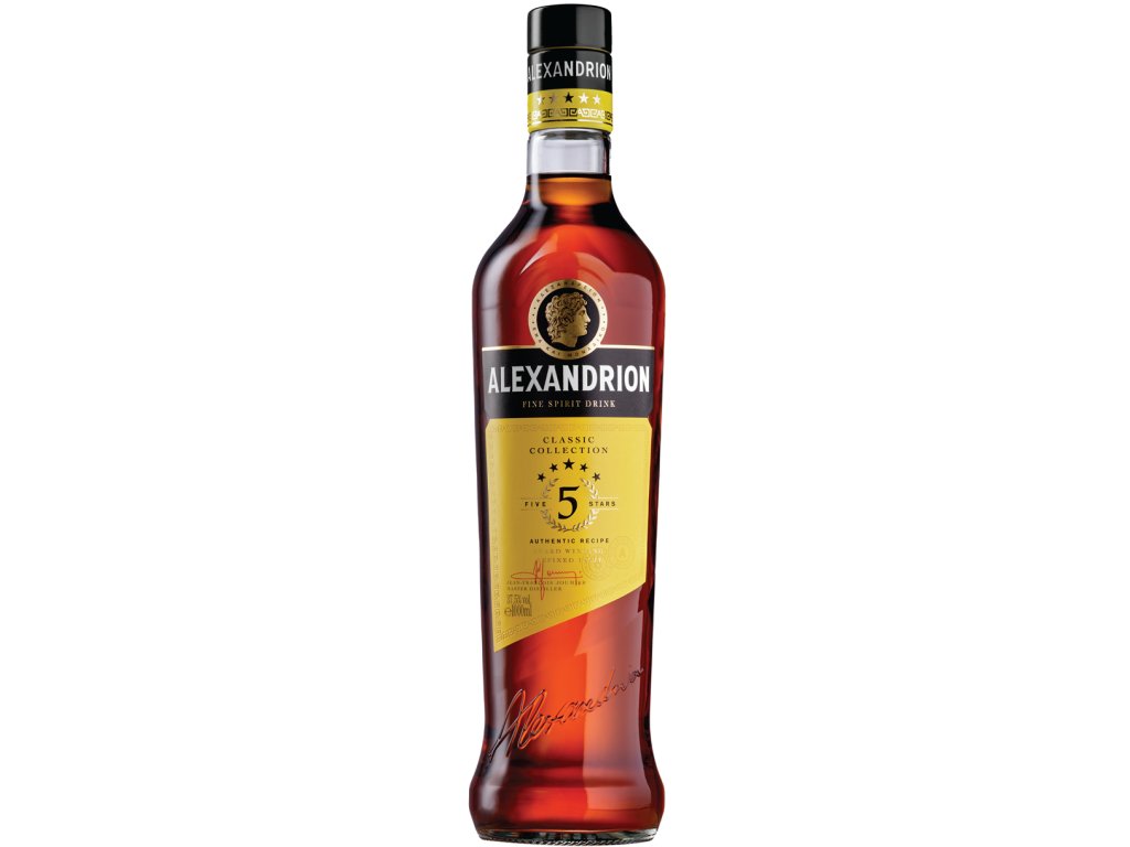 Alexandrion 5* je jemná a vyvážená směs, doplněná stařeným vinným destilátem a směsí přírodních extraktů, s jemnými dozvuky středomořských vůní a dubového dřeva.