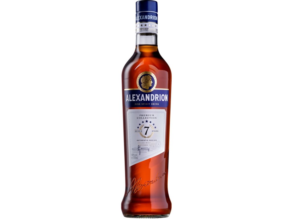 Alexandrion 7* je jemná a vyvážená směs, doplněná stařeným vinným destilátem a směsí přírodních extraktů, s jemnými dozvuky středomořských vůní a dubového dřeva.