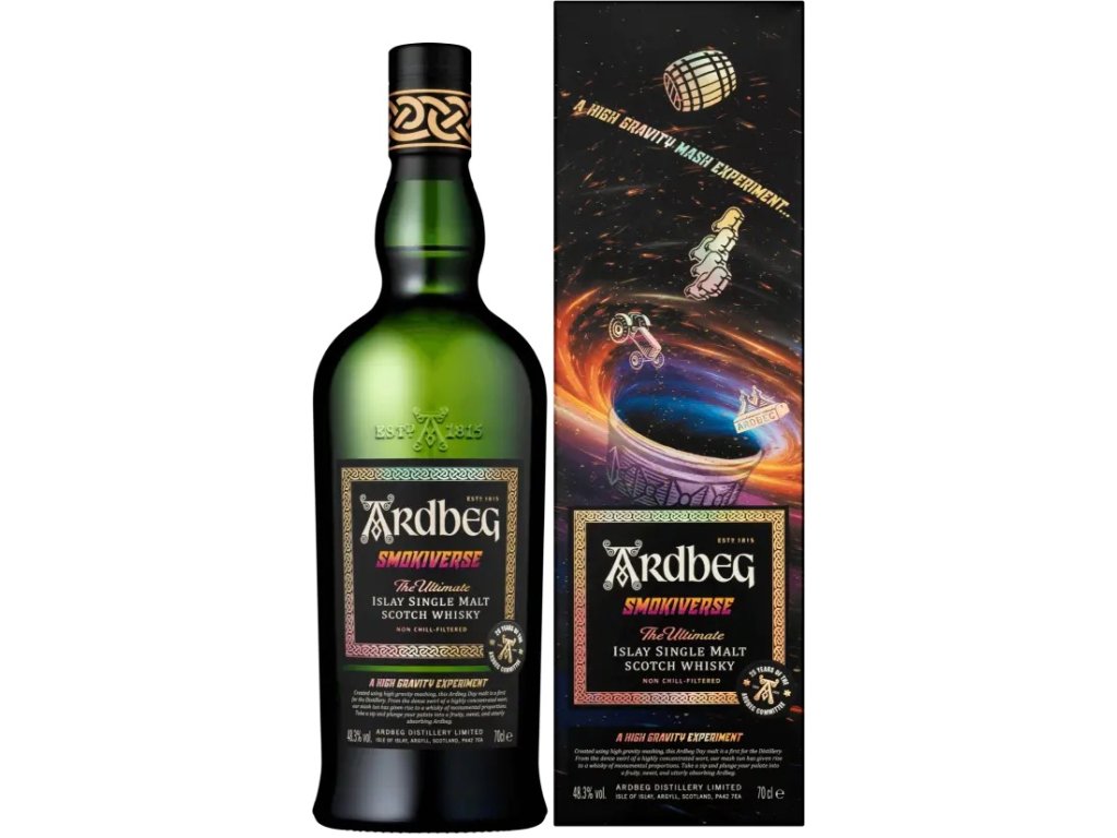 Ardbeg Smokiverse, zrající výhradně v sudech po bourbonu, přináší intenzivní vrstvy třtinového cukru muscovado, zralého ječmene a opečeného kváskového chleba – a vrcholí výbuchem sladké rašeliny a zralého tropického ovoce. Unikátní whisky pro ty, kteří hledají hloubku, sílu a příběh.