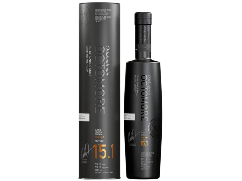 Jedná se o single malt whisky ze skotské palírny Bruichladdich na ostrově Islay. Octomore 15.1 zrála pět let v dubových sudech z proslulých vinařských oblastí, které dříve obsahovaly Oloroso a Amarone, což ji dodává komplexnost, hloubku, pikantnost, typickou červenou barvu, ovocné tóny a právě zmíněnou nakouřenost. Octomore 15.1. je základem celého 15. ročníku, který se zaměřil na zrání v různých sudech a s různou úrovní použití rašeliny na výslednou chuť a je první whisky, která byla destilována ze 100% skotského ječmene Concerto s obsahem rašeliny 108,2 ppm. Vyniká jemnou a komplexní rovnováhou mezi kouřem, sladem a dřevem. Ve vůni převládají náznaky vanilky a sladkého karamelu. V chuti aroma doplňují tóny citrusů, pražené kávy, jemného koření a charakteristické kouřovosti. Nejlépe si ji vychutnáte čistou.
