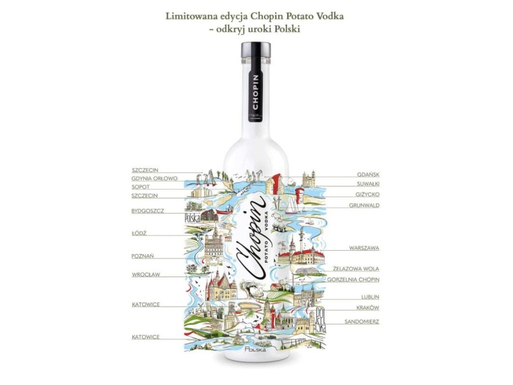 Nejnovější edice a jedinečné provedení mnohonásobně oceňované polské vodky Chopin Potato, tentokrát věnované krajině a nejvýznamnějším místům na mapě Polska.
