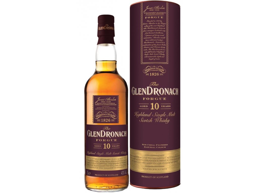 GlenDronach Forgue Aged 10 Years je skotská single malt whisky z oblastni Highland, zrající v jemných sherry sudech Pedro Ximénez a Oloroso. Drama, které ztělesňuje dědictví a terroir Forgue: hojnost ostružin, zralého ječmene a pryskyřičného dubu s dlouhým, přetrvávajícím závěrem.