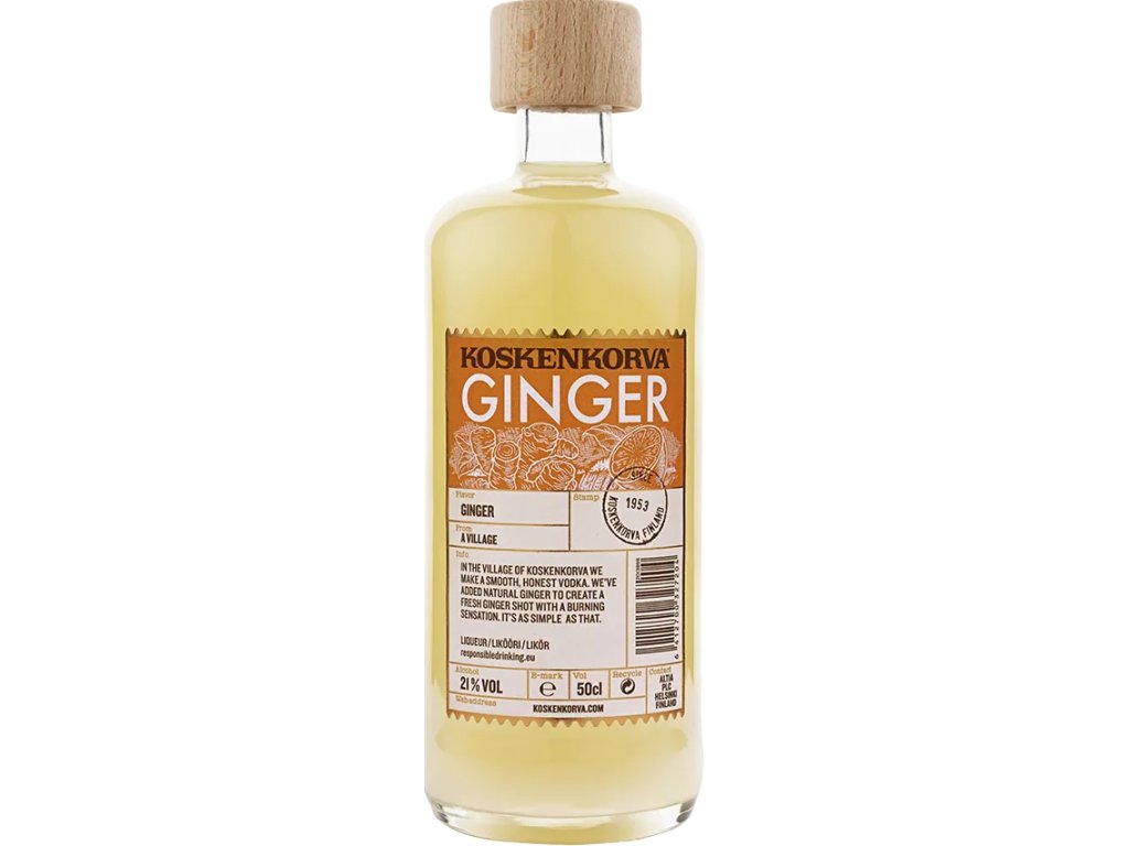 Koskenkorva Ginger je vyroben z přírodních surovin včetně velkého množství zázvoru. Je nefiltrovaný, aby si zachoval svěží a kořeněný charakter.