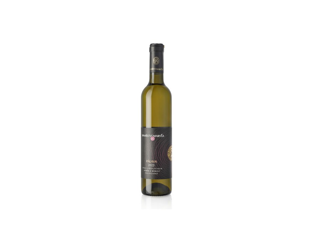Pálava - vinařství Maryša Šitbořice. Bílé jakostní odrůdové víno s přívlastkem výběr z bobulí. Ročník 2023.
