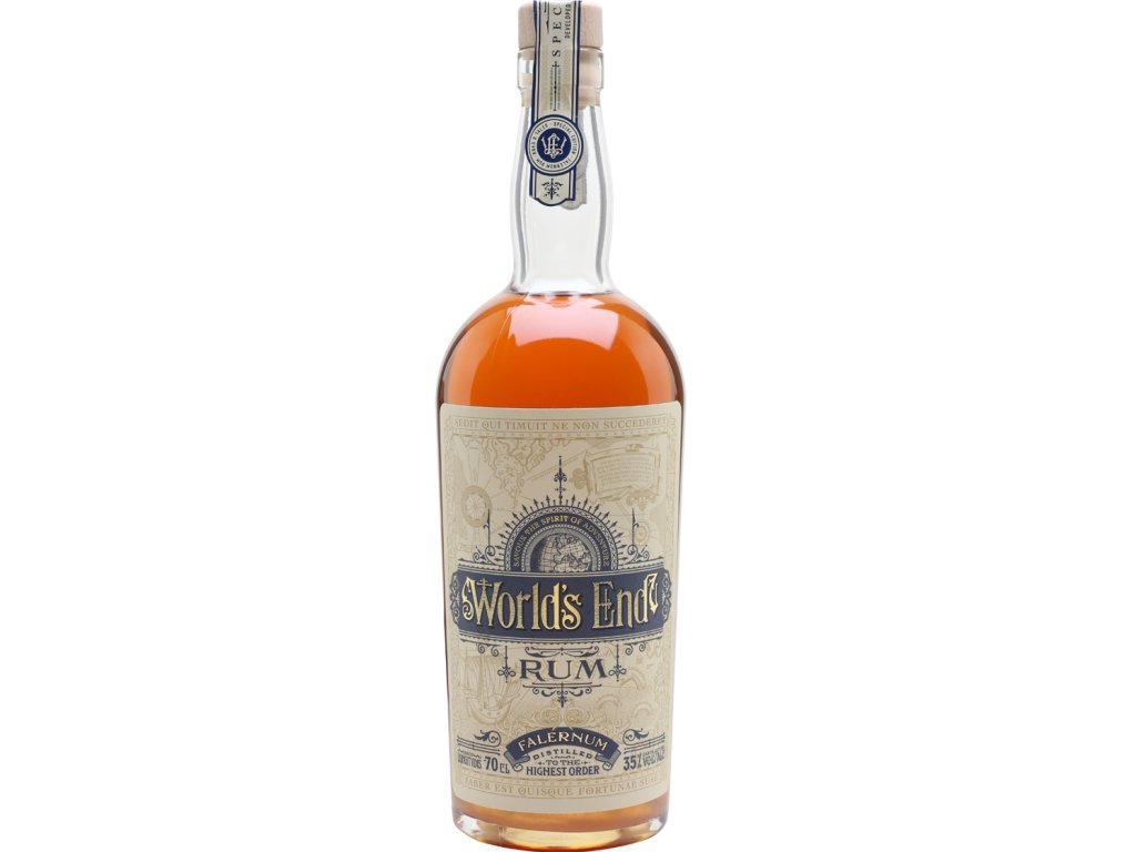 World‘s End Rum Falernum je výrazný blend rumu z několika karibských ostrovů, který je dotvořen směsí tajného koření, ovoce a bylin z nichž dominuje zejména zázvor, chilli, limeta a mandle. Falernum také označuje tradiční karibský léčivý sirup, který se používá do karibských koktejlu jako napr. Zombie ci Mai Tai a jeho historie sahá až do 18. století.